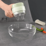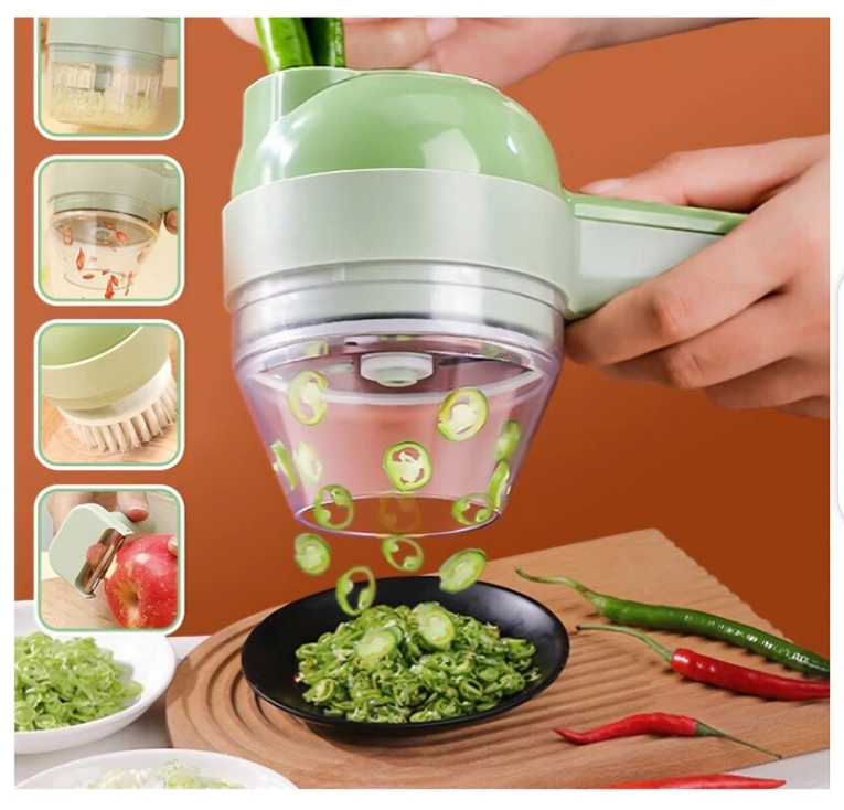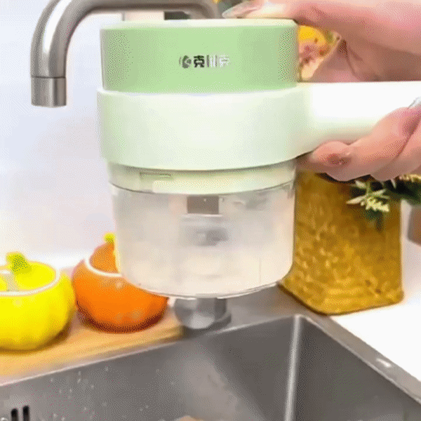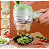 Introducing the 4-in-1 Electric Food Processor, an innovative kitchen tool designed for efficiency and ease of use. This versatile device includes two razor-sharp blades for slicing and mincing food precisely to your preference. Featuring an easy-press button that operates like a lawnmower, it chops foods into thin crisps or coarse and fine textures effortlessly.
